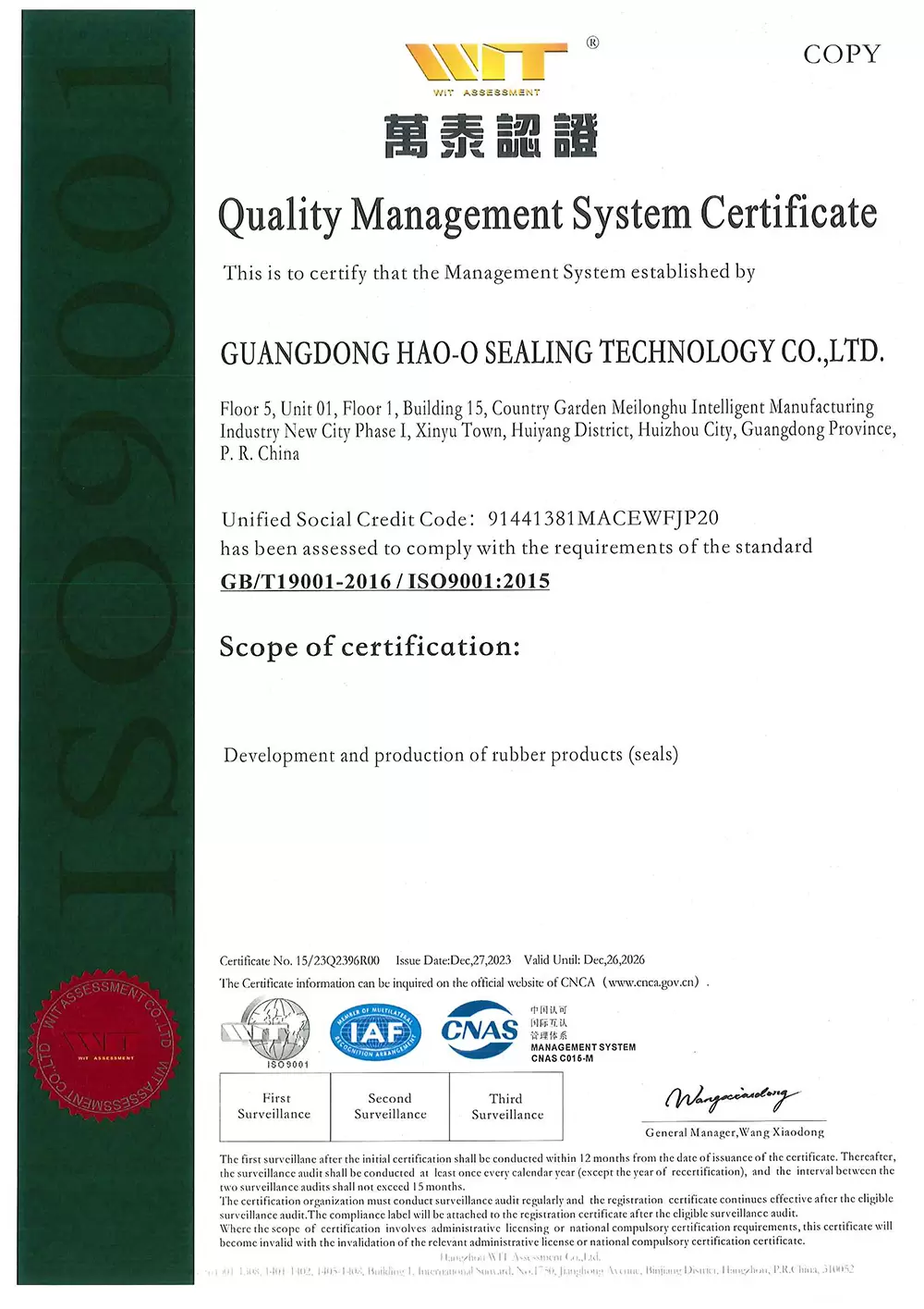 HaO Seal Technology Co., Ltd possède un centre de R&D qui travaille en permanence à l'amélioration de ses lignes de production. Nous nous efforçons de fournir un service satisfaisant à nos clients grâce à une technologie de pointe, notre expertise et notre passion.